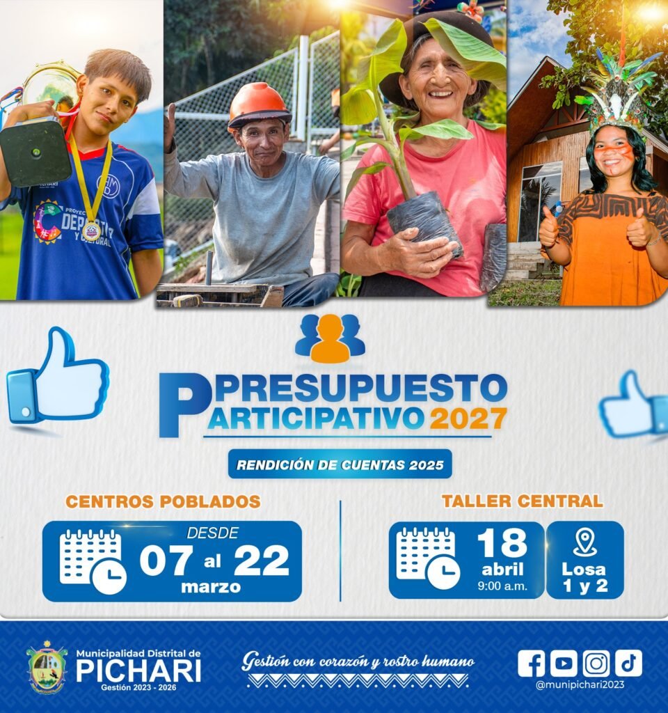 La Municipalidad Distrital de Pichari, en cumplimiento de la Ley N° 28056, Ley Marco del Presupuesto Participativo y su Reglamento,